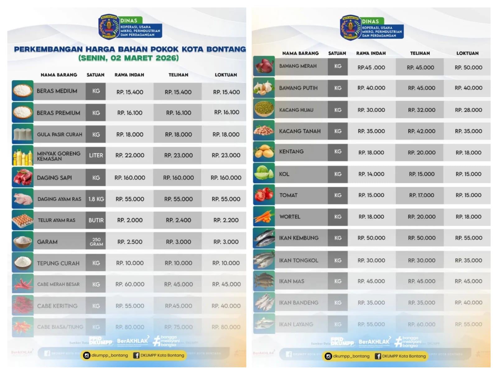 DKUMPP Kota Bontang mengimbau masyarakat tetap bijak berbelanja dan memantau perkembangan harga yang dapat berubah sewaktu-waktu mengikuti kondisi pasokan dan distribusi di lapangan. (Red)