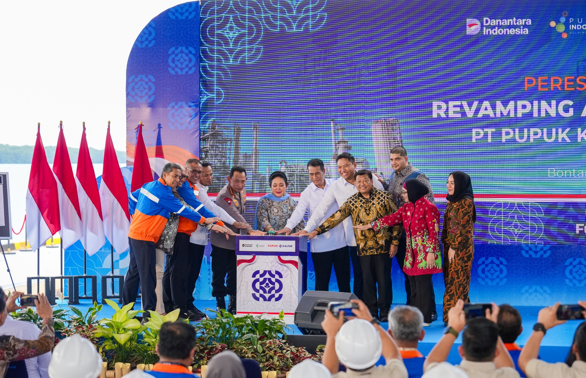 Newsroom.co.id, Bontang – PT Pupuk Indonesia (Persero) melalui anak usahanya PT Pupuk Kalimantan Timur (Pupuk Kaltim) meresmikan Revamping Ammonia Pabrik-2 sebagai bagian dari programrevitalisasi industri pupuk nasional. Melalui langkah strategis peremajaan pabrik ini, Pupuk Indonesia Group dapat meningkatkan efisiensi energi dan memperkuat keandalan operasi pabrik guna menjaga keberlanjutan swasembada pangan.